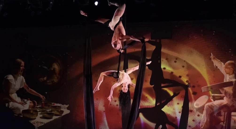 Ms Barbosa and Mr Dzul explore the air element through aerial dance to add sensorial anti gravitational feeling to the spectators creating a sense of lightness and weightlessness, magnifying their transformational meditative state in conjunction with the sounds and lighting effects. An ensemble cast reflects the bliss of transcending through powerful music and togetherness in dance weaving across the stage through beautiful images by Multimedia artistic designer Marcela Bragagnolo.